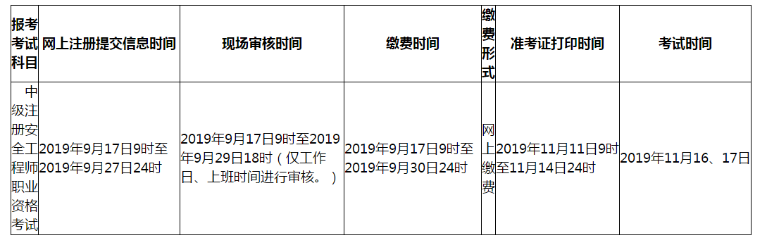 關于2019年度中級注冊安全工程師職業(yè)資格考試報名安排的通知