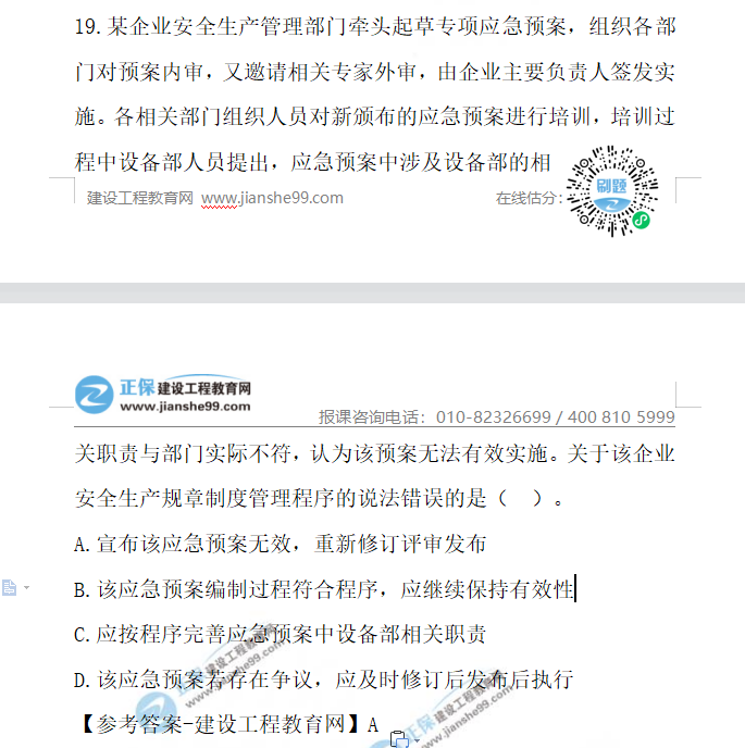 2021年安全工程師考試于10月16日、17日舉行??荚囘^(guò)后,廣大考生最關(guān)心的問(wèn)題莫過(guò)于“2021年安全工程師生產(chǎn)管理試題及答案解析11-20題”了,建設(shè)工程教育網(wǎng)考后將會(huì)根據(jù)學(xué)員反饋,及時(shí)匯總2021安全考試生產(chǎn)管理試題相關(guān)信息分享給大家,并且會(huì)及時(shí)做出答案解析,希望能為廣大安全考生朋友帶來(lái)幫助。