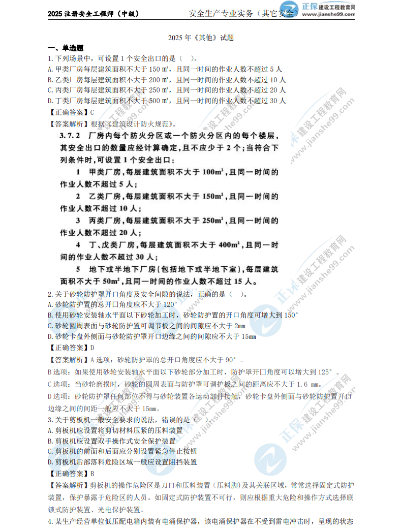 2025年中級安全工程師《其他安全》考試結(jié)束,考生們最關(guān)心的肯定是這一科目試題及答案。建設(shè)工程教育網(wǎng)考后會依據(jù)考生反饋,及時匯總中級安全工程師《其他安全》的試題及答案,期望能給各位考生提供幫助!
