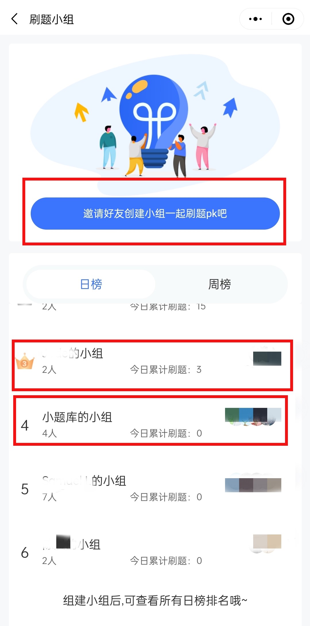 日榜周榜可看現(xiàn)有小組刷題戰(zhàn)績(jī)!