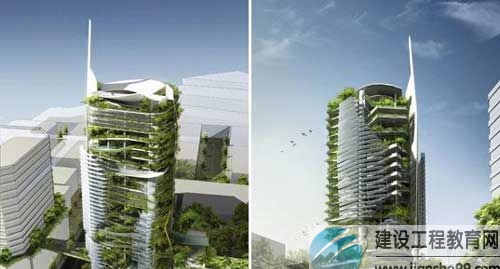 EDITT大樓全名“熱帶生態(tài)大樓”,由馬來西亞的建筑公司TR Hamzah & Yeang設計并建造。而此公司賦予EDITT的設計理念在于:持續(xù)的適應性和生態(tài)環(huán)境的改善。大樓將安裝太陽能面板充分利用熱帶兇猛的陽光,就像植物把污水轉化成沼氣和肥料一樣。新加坡城可被稱為石屎(注1)森林,這樣一株“植物建筑”可促進城區(qū)的生物品種數(shù)量的增加,并可以讓人們在日常生活中多些接觸大自然。