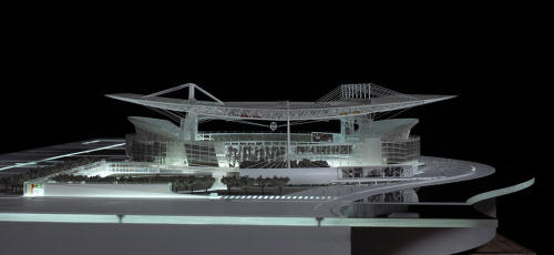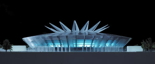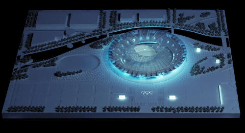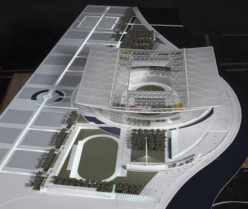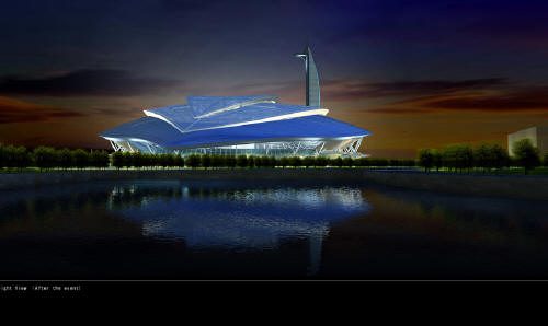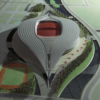 除屋頂外,體育場主體高度為45米,可以保證奧運綠地及組成部分不被遮擋,周邊還設(shè)計了一些廣場作為聚會和慶祝之用,同時還設(shè)計了能滿足賽時需要的交通設(shè)施。圓形的主體育場可以容納10萬名觀眾觀看比賽,碗型的設(shè)計保證了良好的座席視線,內(nèi)部流線的設(shè)計避免了各種不同流線之間的交叉和沖突。奧運會之后,可以永久性的拆除南面2萬個座位,使體育館容量變?yōu)?萬人,并將騰出的空間改建為文化娛樂活動的舞臺。