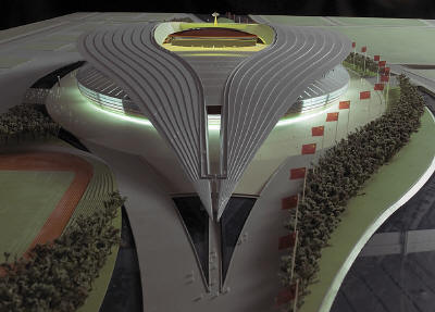 國家體育場的建筑位置和場地設(shè)計,滿足所有特殊功能的需求,建筑面積150,000平方米,并且以此為基礎(chǔ)面積,鑒于地下服務(wù)層和臨時用于主辦奧運期間必須的各種空間需要,附加20,000平方米。奧運期間體育場內(nèi)可以容納10萬人觀看賽事,場外的互動廣場和周遍平臺可以聚集10萬人感受比賽的氣氛。賽后,可以將2萬個臨時座席拆除以作他用,需要時還可以重新搭建。