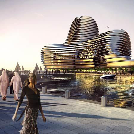 阿布達(dá)比世界貿(mào)易中心,位于阿布扎比東Al Raha Beach.沿海氣候和地形的選址及建設(shè)經(jīng)歷一個(gè)復(fù)雜環(huán)境計(jì)算機(jī)分析的過(guò)程。它提供了遮蔭,空氣自然流動(dòng)的,緩沖對(duì)抗強(qiáng)的沙漠風(fēng),它是不對(duì)稱雕塑,具有環(huán)保和功能上的連貫性。建設(shè)延伸到中心的濱海創(chuàng)造一個(gè)半島完成了生動(dòng)的濱水長(zhǎng)廊。該項(xiàng)目匯集了精心挑選組合:辦公室,公寓,酒店和商店,以鼓勵(lì)不同格局的經(jīng)濟(jì)和社會(huì)活動(dòng)。