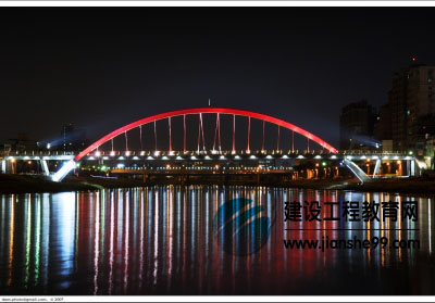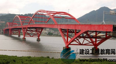 八千里路云和月,關(guān)山飛渡若等閑位于臺(tái)北市,孔跨布置為44+143+165+143+44米。本橋采用全焊鋼結(jié)構(gòu),大節(jié)段吊裝,典型的柔性拱剛性梁組合體系。