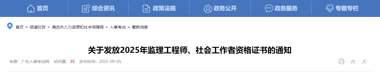 廣東清遠(yuǎn)市2025年監(jiān)理工程師資格證書發(fā)放通知