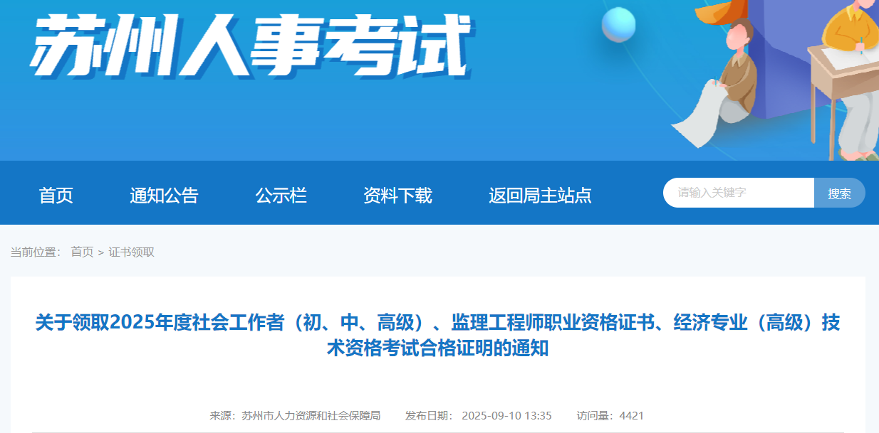 關于領取2025年度社會工作者(初、中、高級)、監(jiān)理工程師職業(yè)資格證書、經(jīng)濟專業(yè)(高級)技術資格考試合格證明的通知