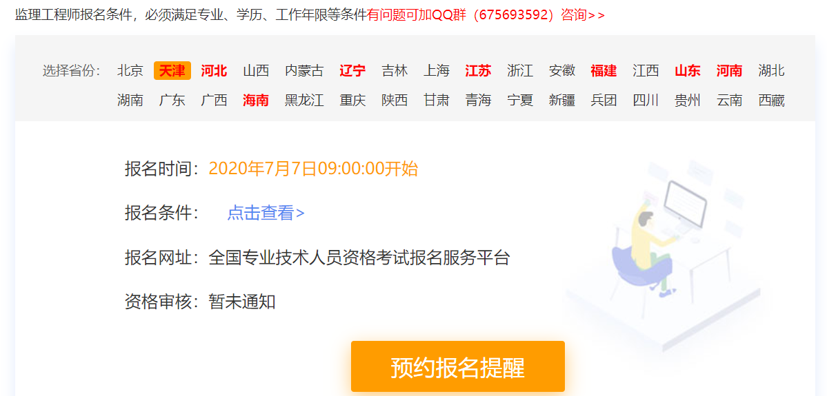 2020年監(jiān)理工程師報(bào)考時(shí)間各省已經(jīng)陸續(xù)發(fā)布,報(bào)考時(shí)間是7月上旬,希望考生注意查看~