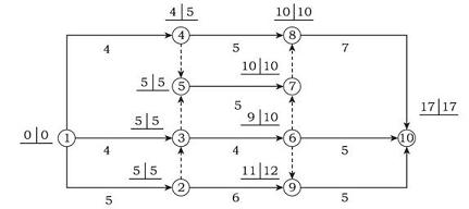 某分部工程雙代號網(wǎng)絡(luò)計(jì)劃如下圖所示,圖中已標(biāo)出每個節(jié)點(diǎn)的最早時間和最遲時間,該計(jì)劃表明( ?。?。