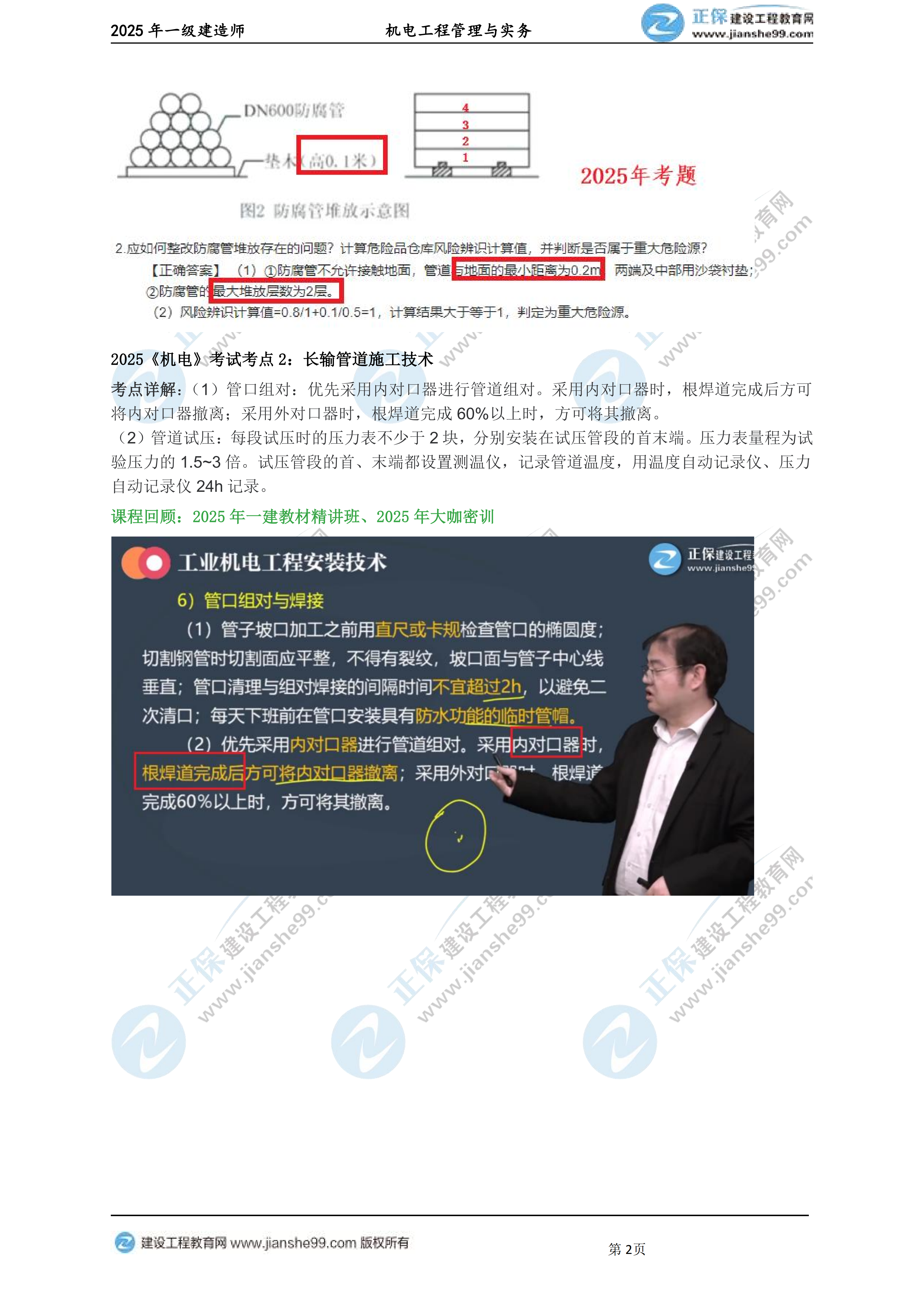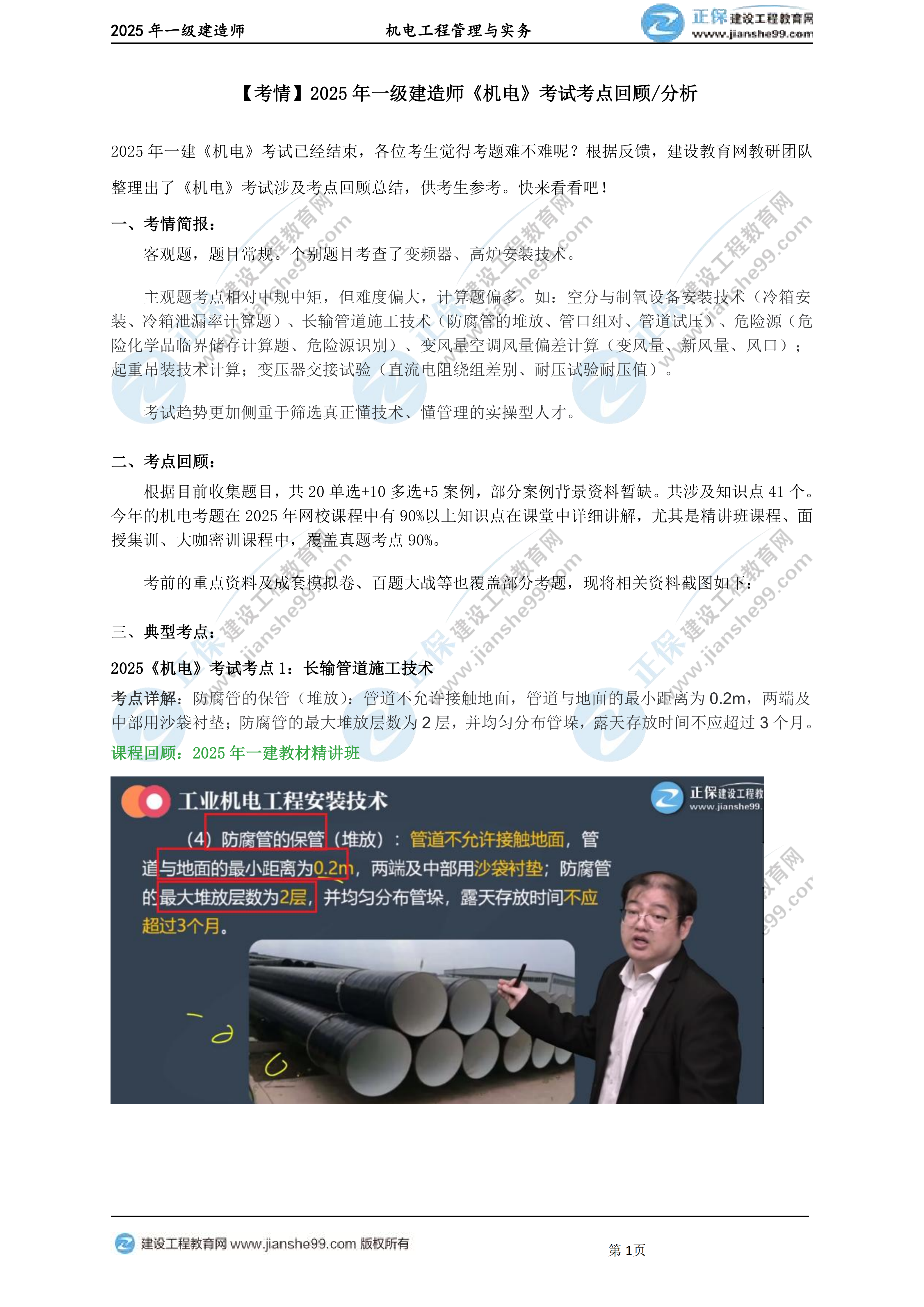 根據(jù)目前收集題目,共20單選+10多選+5案例,部分案例背景資料暫缺。共涉及知識點41個。今年的機電考題在2025年網(wǎng)校課程中有90%以上知識點在課堂中詳細講解,尤其是精講班課程、面授集訓(xùn)、大咖密訓(xùn)課程中,覆蓋真題考點90%。