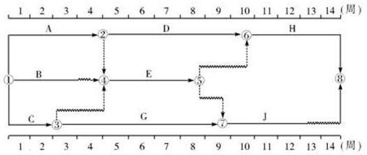 如圖所示雙代號(hào)時(shí)標(biāo)網(wǎng)絡(luò)計(jì)劃中,如果B、D、J三項(xiàng)工作因共用一臺(tái)施工機(jī)械而必須依次施工,則該施工機(jī)械往現(xiàn)場的最小閑置時(shí)間為( ?。┲堋?/p>