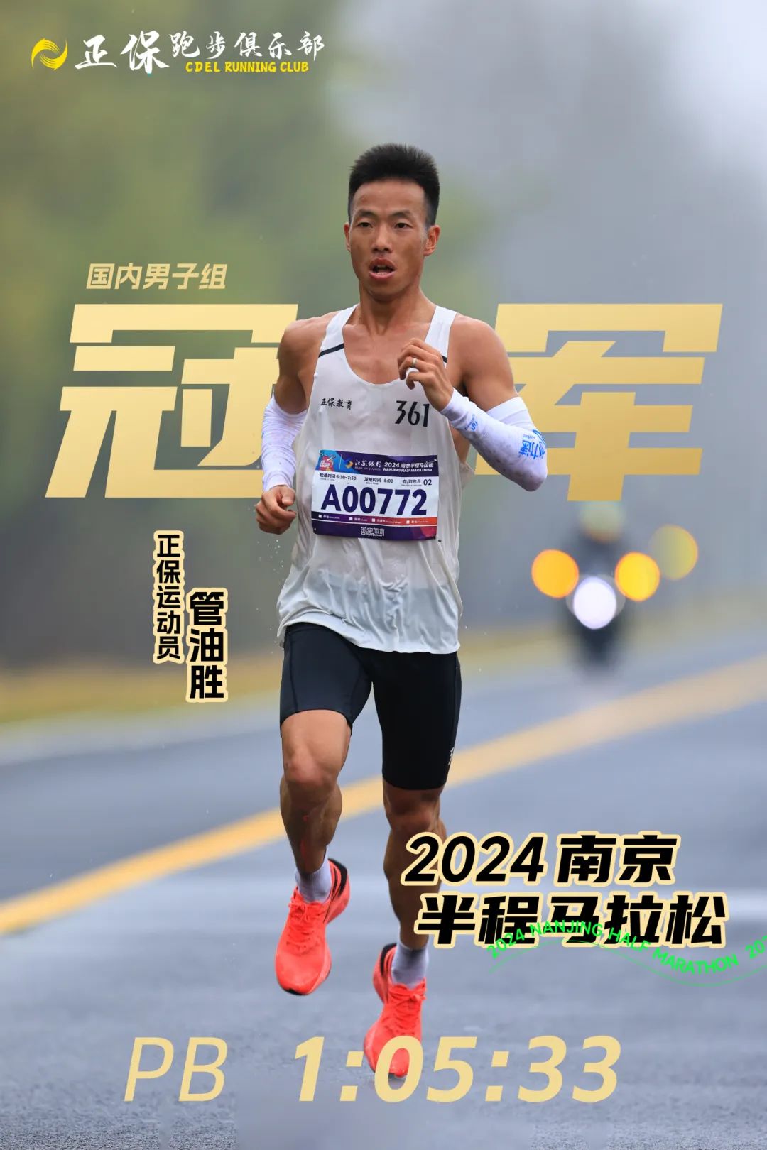 昨日(3月17日),2024南京半程馬拉松開跑,正保運(yùn)動員管油勝以1:05:33獲得男子組國內(nèi)冠軍,國際第四的好成績同時(shí)打破個(gè)人PB,這也是他本月的第三個(gè)冠軍,恭喜他!