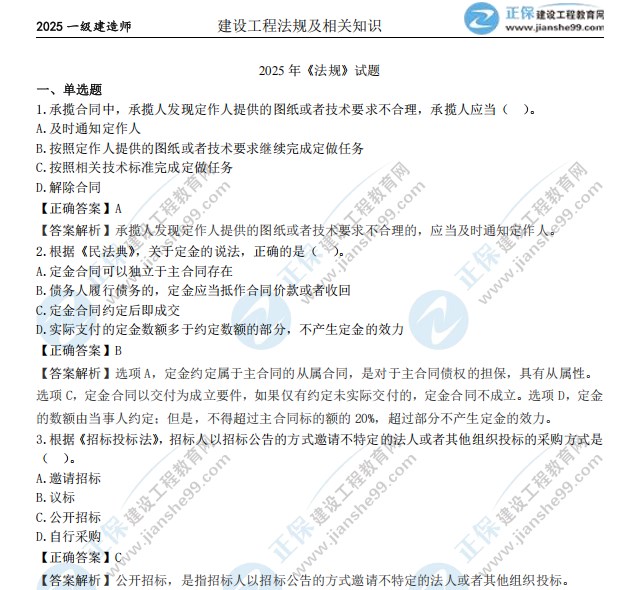 2025年一級(jí)建造師《建設(shè)工程法規(guī)及相關(guān)知識(shí)》考試過后,廣大考生最關(guān)心2025一級(jí)建造師《建設(shè)工程法規(guī)及相關(guān)知識(shí)》試題及答案,建設(shè)工程教育網(wǎng)考后將會(huì)根據(jù)學(xué)員反饋,及時(shí)匯總2025年一級(jí)建造師《建設(shè)工程法規(guī)及相關(guān)知識(shí)》試題及答案分享給大家,并且會(huì)及時(shí)做出答案解析,希望能為廣大咨詢考生朋友帶來幫助。