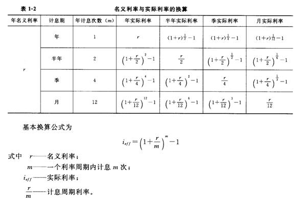 名義利率;計息周期有效利率;年有效利率;名義利率與實際利率的換算。