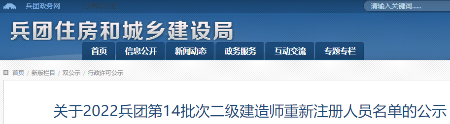 關(guān)于2022兵團第14批次二級建造師重新注冊人員名單的公示