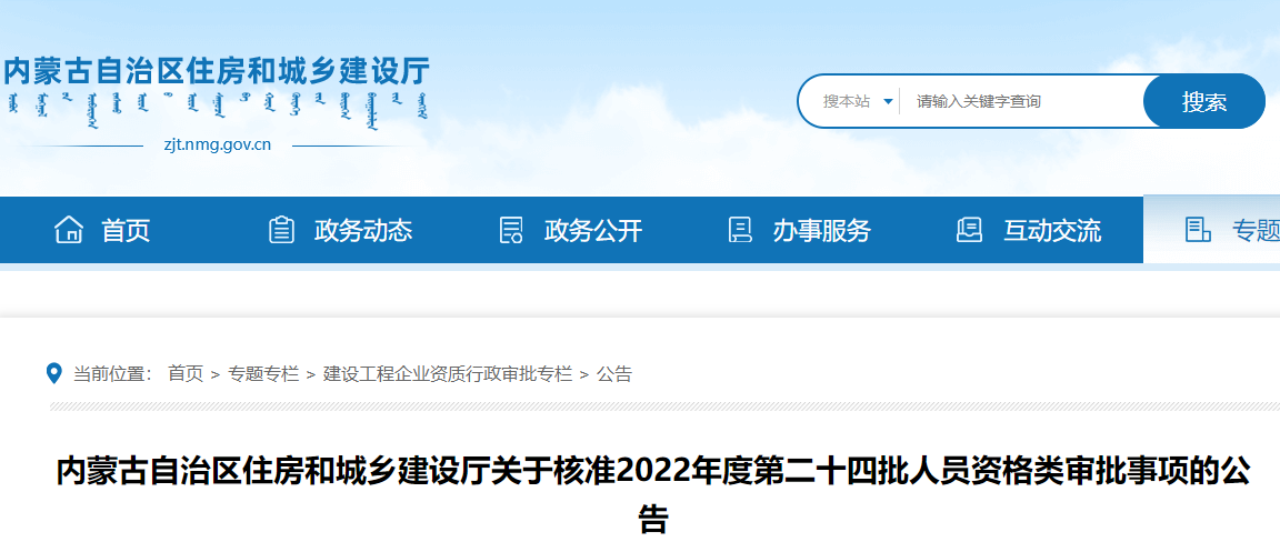 內(nèi)蒙古關(guān)于核準(zhǔn)2022年度第二十四批二級(jí)建造師注冊審批事項(xiàng)的公告