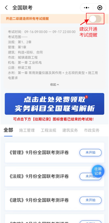 建議開(kāi)通考試提醒,避免錯(cuò)過(guò)二建考試。