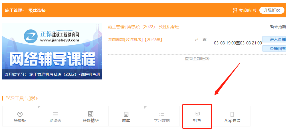接下來小編給大家演示一下購課學(xué)員如何進入機考系統(tǒng)練習(xí)以及如何聽考前刷題直播課!