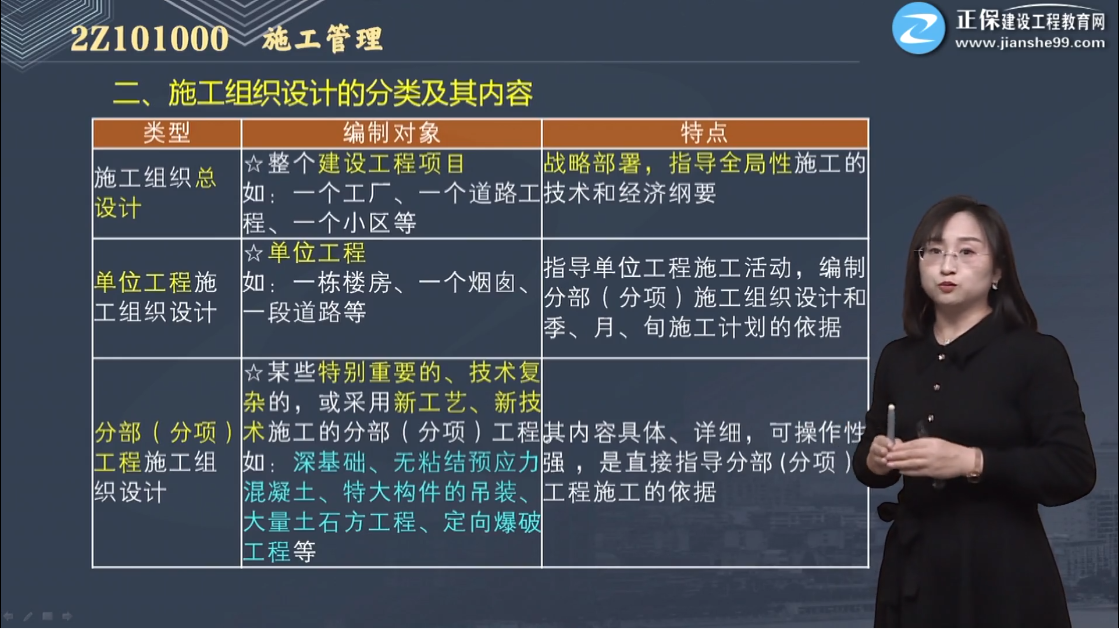 特點(diǎn):戰(zhàn)略部署,指導(dǎo)全局性施工的技術(shù)和經(jīng)濟(jì)綱要。