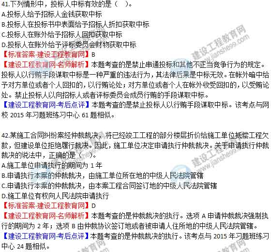 【老師解析】2015年二建法規(guī)及相關(guān)知識(shí)試題及答案(37-42題)