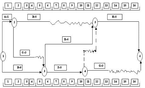 關(guān)鍵線路為1-3-5-6,計算工期為16個月。
