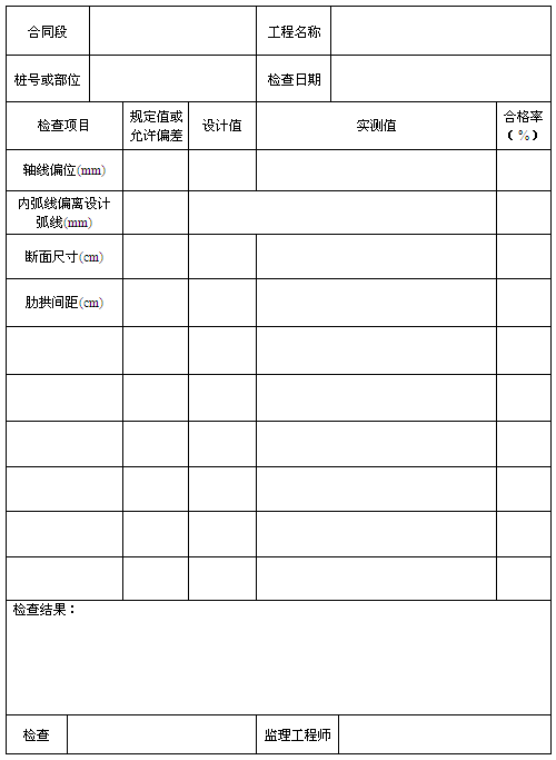 現(xiàn)澆拱圈檢查表