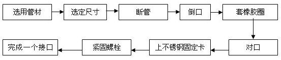 ⑤將要連接的管件或直管的管口放入翻轉的橡膠圈內,校準方位,與另一管端接口擠實,把翻轉的橡膠圈口翻回正常狀態(tài)。