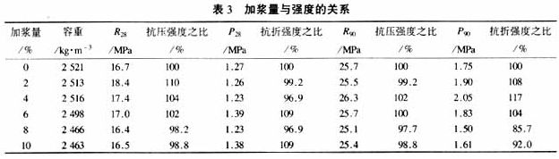為了檢測改性混凝土的各項性能指標(biāo)是否達(dá)到沙牌工程的設(shè)計要求,根據(jù)上面的試驗成果選用4%的加漿量對其各項性能進(jìn)行試驗。