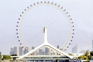 它高聳在海河干流起始的地方——三岔河口附近,直徑110米,最高處距地面可達(dá)120米,相當(dāng)于35層樓的高度。乘坐摩天輪,可以飽覽周圍40公里內(nèi)的津城景色。今年“五一”,“天津之眼”正式向游人開放,第一天便吸引了眾多津城百姓前往。坐在摩天輪的座艙內(nèi)欣賞著家鄉(xiāng)美麗的景色,不由得心生一股濃濃的自豪感。