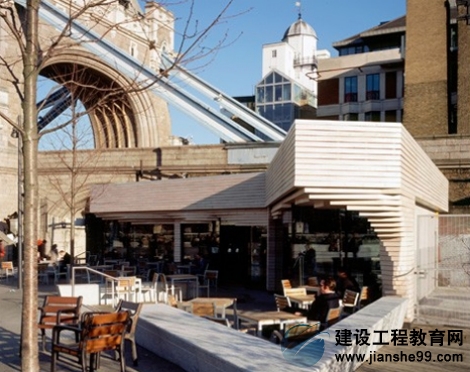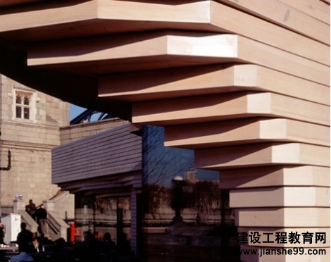 另外一個就是用鈣化變白的木材建造的,具有屋頂綠化,并提供了觀看倫敦最好的視野的場地。即使他們似乎很不起眼,卻非常受歡迎。這些休息亭,實際上比看上去要大,其中兩個“隱藏”地,兩個地下通風豎井和一個擦窗機的停車場。