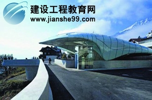 這是扎哈·哈迪德(ZahaHadid)為阿爾卑斯有軌纜車是一種專門為在陡峭的山地行走而設計的新型軌道列車。這種車像普通的輕軌列車、火車一樣需要沿軌道而行,但與此同時,列車前部還有纜繩牽引,協助列車翻山越嶺。而Nordpark列車的行駛線路貫穿在一片冰天雪地中,列車本身的建設就是一項奇跡。