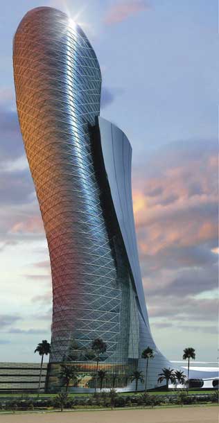 RMJM設(shè)計(jì)的阿布扎比“首都門”(Capital Gate)摩天樓傾斜度達(dá)到18度,目前正在建造。其開發(fā)商阿布扎比國家展覽公司(ADNEC)已經(jīng)提交申請,有望成為吉尼斯紀(jì)錄中“世界最傾斜的大廈”。
