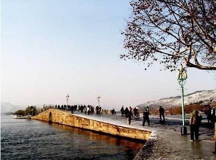 斷橋位于西湖白堤?hào)|端。在西湖古今諸多大小橋梁中,斷橋的名氣最大。據(jù)說建于唐朝,時(shí)人張祜《題杭州孤山寺》詩中就有“斷橋”一詞。一旦斷橋下雪,銀妝素裹,便會(huì)營造出與常時(shí),常景迥然不同的雪湖勝?zèng)r。不過我們現(xiàn)在知道的斷橋,多是因?yàn)樵S仙和白娘子凄美的愛情故事。