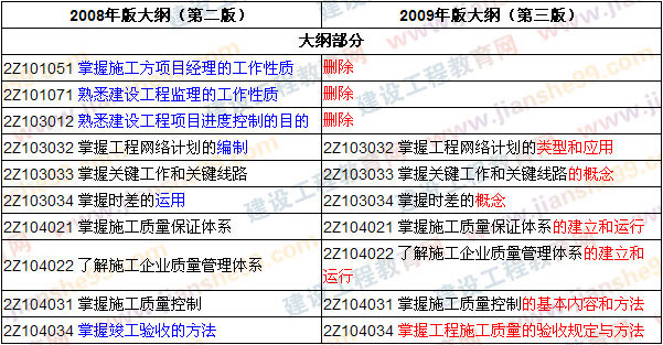 下面網(wǎng)校的教務(wù)老師對二級建造師《建設(shè)工程施工管理》大綱的變動情況進行一個詳細說明: