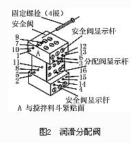 。3)圖2中遠(yuǎn)離攪拌料斗(A面)的四個(gè)接口,一定不能與滑閥上的任何一個(gè)潤(rùn)滑點(diǎn)相接,因此四個(gè)口無(wú)安全顯示桿,當(dāng)堵塞時(shí)無(wú)法作出顯示。