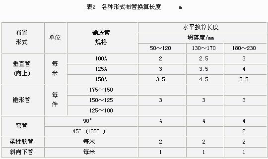 應(yīng)盡量減少使用彎管,磨損嚴(yán)重的管子應(yīng)盡量布在離混凝土泵較遠(yuǎn)的位置,以免壓力過(guò)高爆管。各種形式布管換算為水