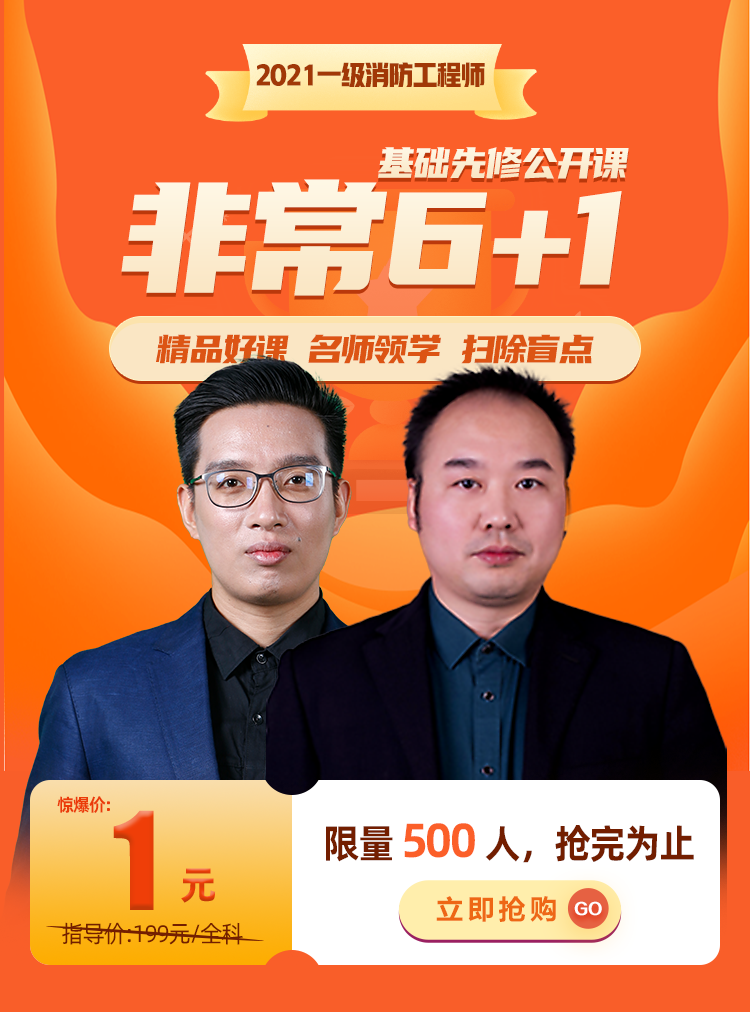 2021一級(jí)消防工程師“非常6+1”基礎(chǔ)先修公開(kāi)課 限時(shí)1元驚喜購(gòu)!