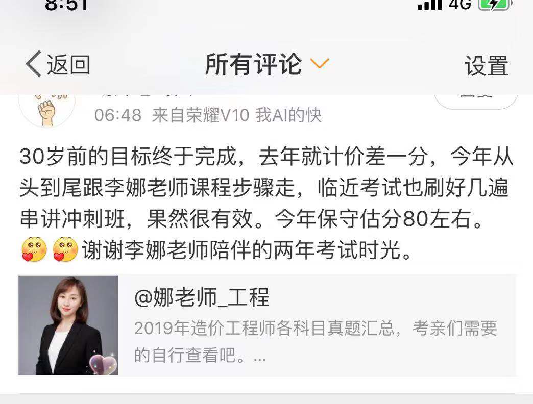 看到學(xué)員們都在工程計(jì)價(jià)上取得了不錯(cuò)的成績(jī),網(wǎng)校的老師和小編們也是非常開(kāi)心!2020年我們將繼續(xù)提供更加優(yōu)質(zhì)的課程和服務(wù),愿一級(jí)造價(jià)工程師考試對(duì)于我們的學(xué)員們來(lái)說(shuō),永遠(yuǎn)不難!2020年的工程計(jì)價(jià)學(xué)員們,跟著我們的美娜老師,沖鴨!
