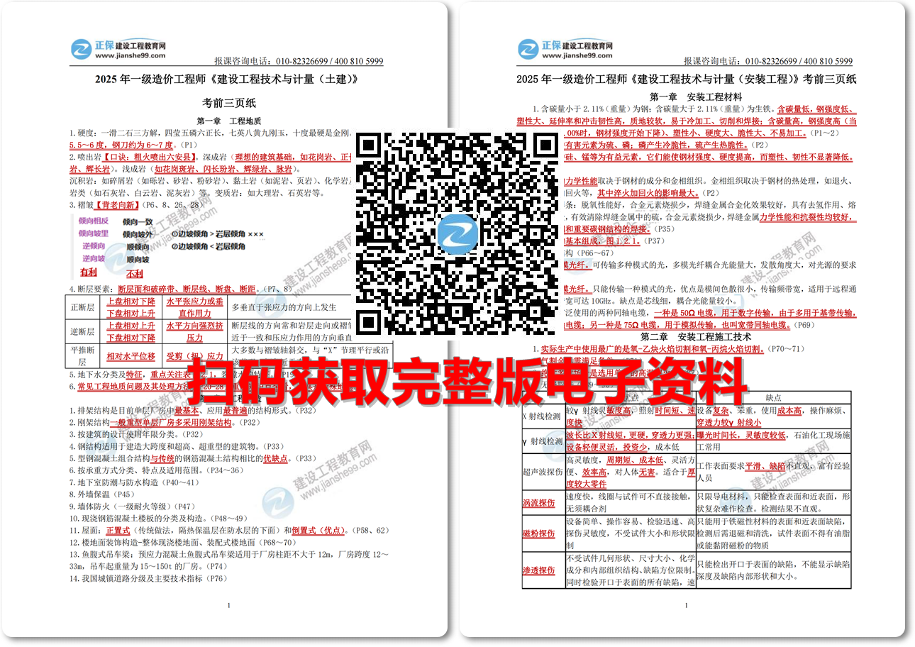 別再猶豫,抓住最后的備考時(shí)機(jī)。掃碼免費(fèi)領(lǐng)取考前三頁(yè)紙,讓它們成為你沖刺備考的加速器。相信自己,通過(guò)努力和科學(xué)備考,你一定能在2025年的一級(jí)造價(jià)師考試中取得優(yōu)異的成績(jī)!