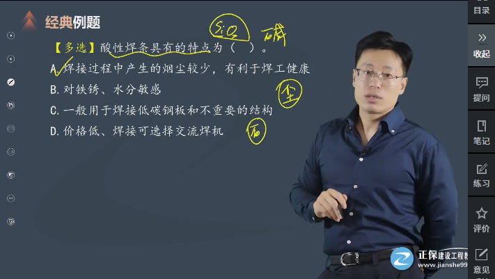 A.酸性焊條一般用于焊接低碳鋼和不太重要的碳鋼結(jié)構(gòu)