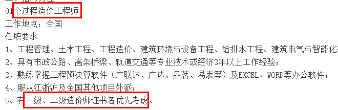 注意!招聘時(shí)有一級(jí)造價(jià)工程師資格的會(huì)被優(yōu)先考慮