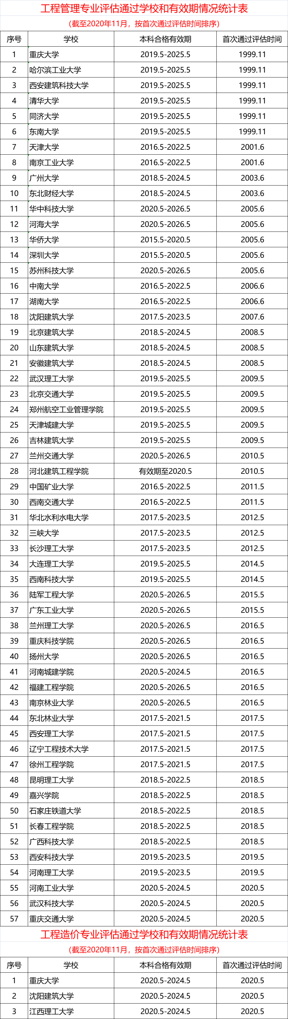 工程管理、工程造價(jià)專業(yè)評(píng)估(認(rèn)證)結(jié)論的通告