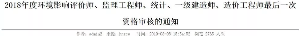 2018年度環(huán)境影響評(píng)價(jià)師、監(jiān)理工程師、統(tǒng)計(jì)、一級(jí)建造師、造價(jià)工程師最后一次資格審核的通知