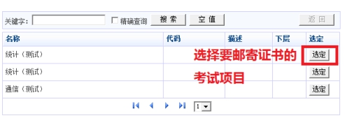 第六步:系統(tǒng)會(huì)自動(dòng)彈出考生通過(guò)并可領(lǐng)取證書(shū)的考試項(xiàng)目,現(xiàn)在選擇想要郵寄證書(shū)的考試。