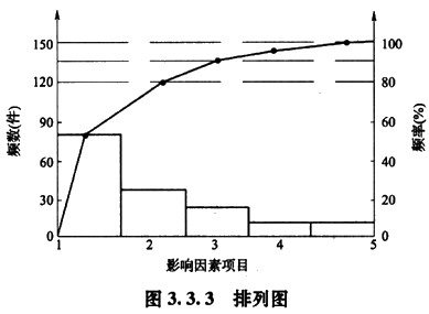 將影響質(zhì)量的因素分為三類,累計(jì)頻率在0~80%范圍的因素,稱為A類因素,是主要因素;在80%~90%范圍內(nèi)的為B類因素,是次要因素;在90%~100%范圍內(nèi)的為C類因素,是一般因素。