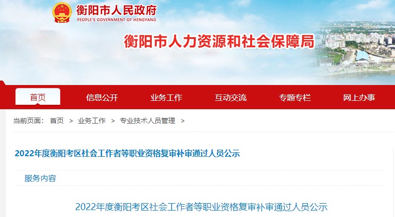2022年度衡陽考區(qū)社會工作者等職業(yè)資格復審補審通過人員公示
