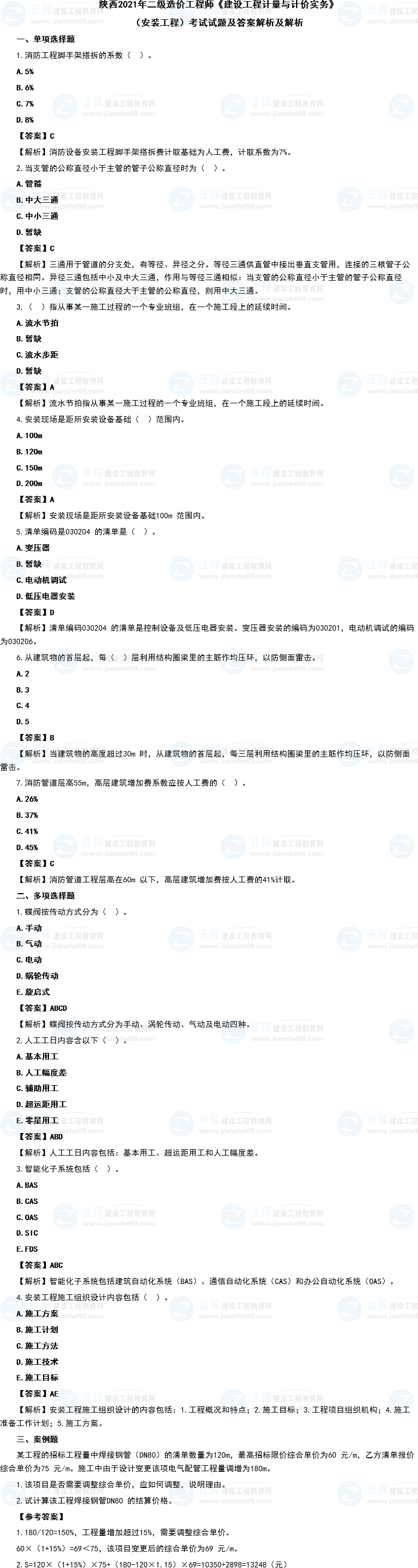 陜西2021年二級造價師《安裝實務(wù)》考試試題及答案解析(考生回憶版)