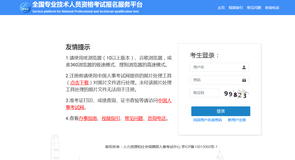 第一步:進入中國人事考試網(wǎng)()-點擊網(wǎng)上報名-進入全國專業(yè)技術人員資格考試報名服務平臺;如新報考學員需要進行注冊,老用戶直接登錄;