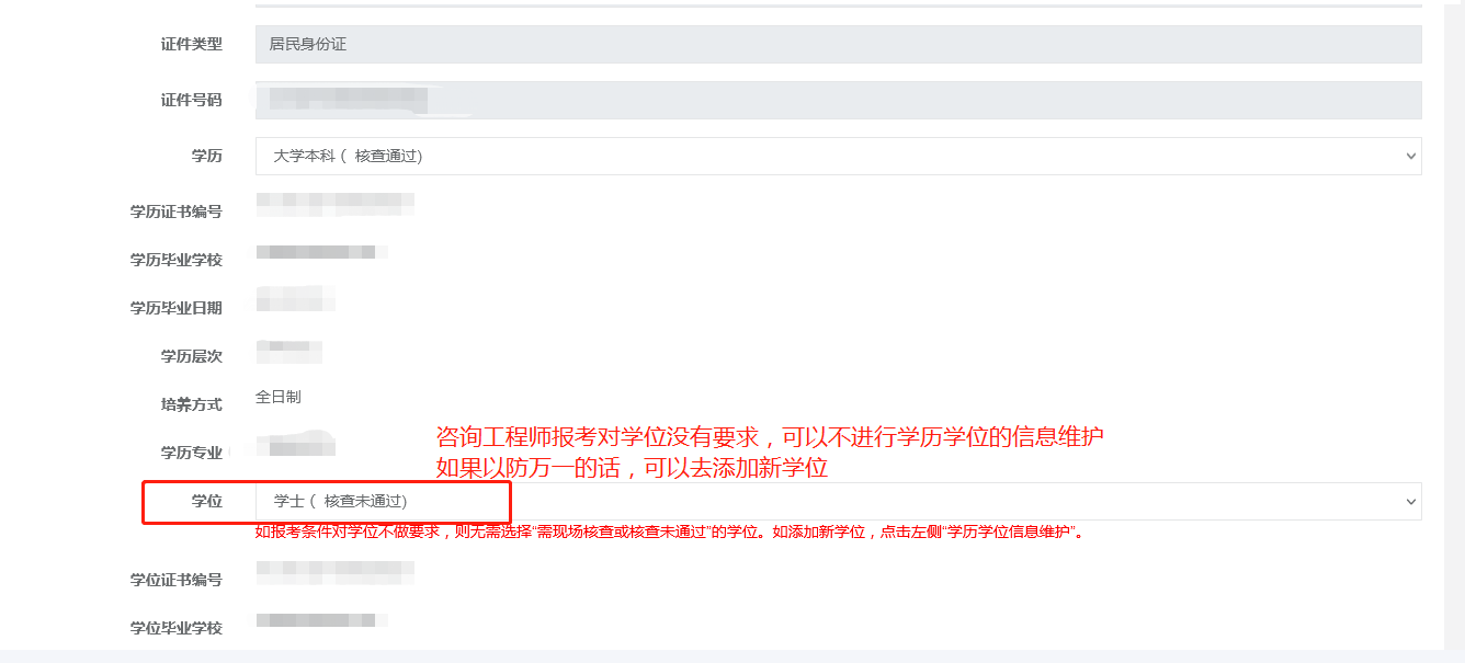 第五步:這部分信息系統(tǒng)自動識別,但需要注意學位部分的選擇;