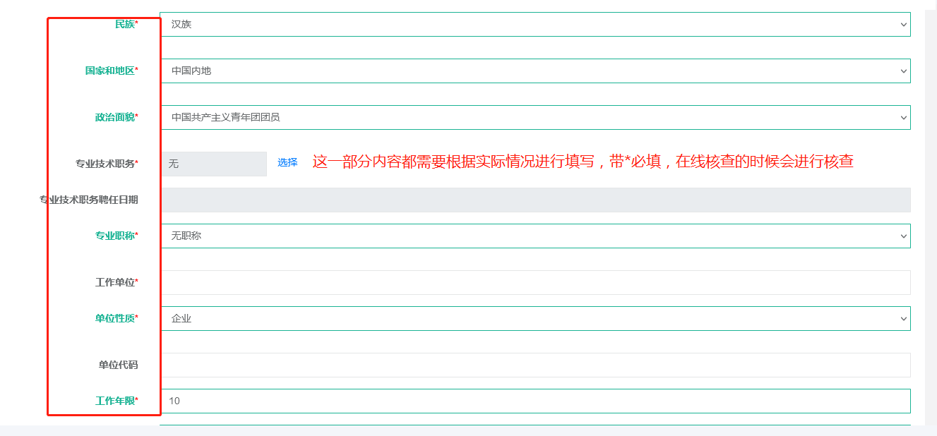第四步:這部分是填寫的重點,核查必查的地方;地市選擇你考試所在的地點,戶籍地或者工作所在地,簡言之考哪選哪;級別就是考全科或者免2科;下面都是根據(jù)實際情況進行核查,核查點是有現(xiàn)場核查的需要選擇;